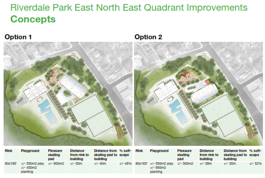 Did you know that Riverdale Park East has been earmarked for renovation? The north east quadrant of the park is set for some significant improvements in 2016. On the list is a new hockey rink, pleasure skating pad, playground, zamboni storage and much needed improved access to the park.