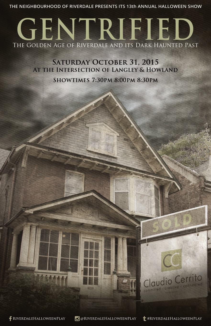 Many of you already know about the amazing Riverdale Hallowe’en Show that takes place every Hallowe’en at the intersection of Langley and Howland. For those of you who don’t, this musical extravaganza is organized and populated with many talented Withrow parents and their kids. Please see videos from last year’s show here. You can access their Facebook page too. This year’s production is entitled ‘Gentrified – The Golden Age of Riverdale and its Dark Haunted Past’; it plays up both Riverdale’s history and Toronto Life’s recent endorsement (in case you missed it, we ranked #6 in a list of 140 neighbourhoods in Toronto).