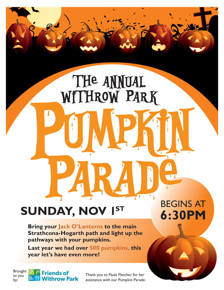Bring your Jack O’Lanterns to the main Strathcona-Hogarth path and light up the pathway with your pumpkins.